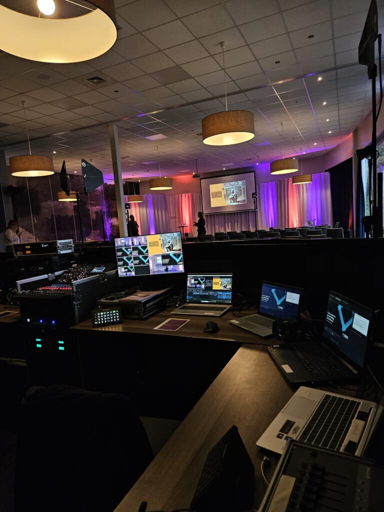 Wij leveren de complete technische ondersteuning: van camera’s, geluid en belichting tot de volledige regie en begeleiding tijdens het event. Of het nu gaat om een hybride congres, een bedrijfsbijeenkomst of een productlancering, wij zorgen dat alles technisch perfect verloopt.